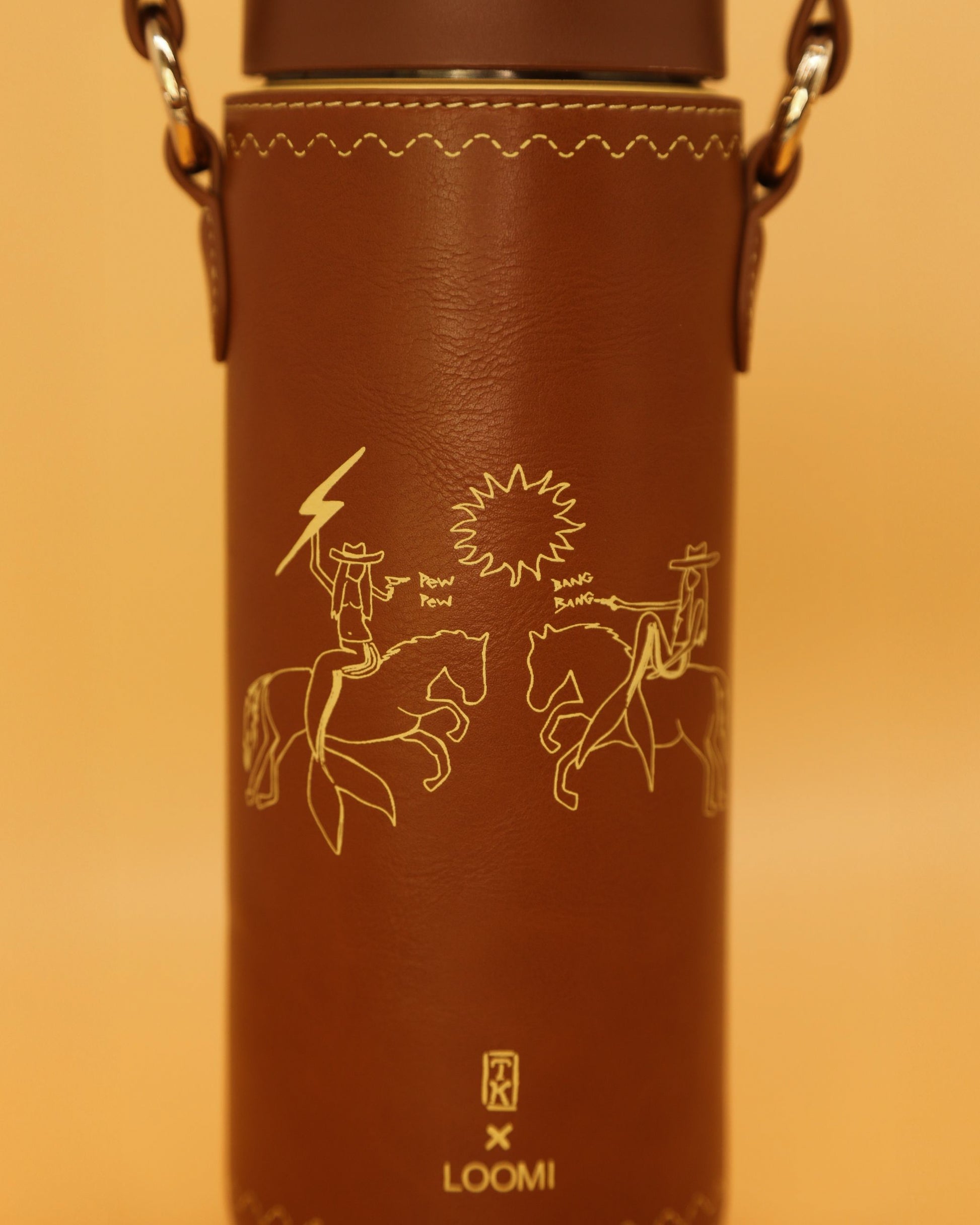 This limited-edition bundle features the Cowgirls & Mermaids collaboration with Western Australian artist Tahnee Kelland. Inspired by strength, femininity, and flow, the set includes Loomi’s signature triple-insulated bottle, wrapped in a dark caramel vegan-leather Slip adorned with Tahnee’s hand-drawn artwork. Complete with a matching short strap it’s hydration that doubles as art.