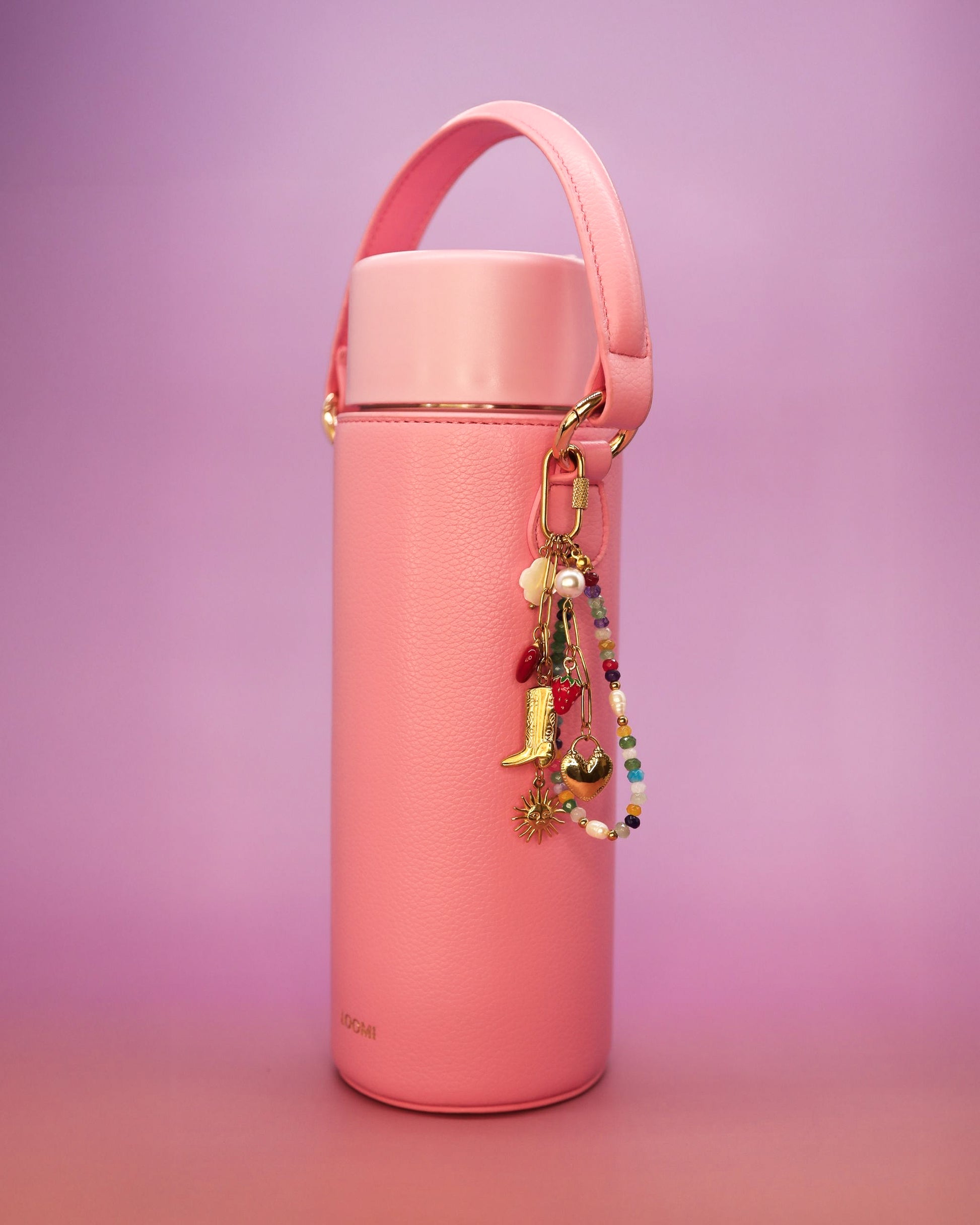 Bring a little rodeo sparkle to every sip. Cowgirl Confetti layers tiny western icons (boot, sun, heart, pearl, strawberry, flower and a rainbow bead loop) on a 18k gold-plated stainless chain that clips straight onto your Loomi Slip’s hardware rings. It’s joyful, jangly, and ready for main-character moments.